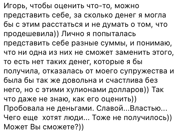 Как-то я написал в своем телеграм канале пост о том, сколько стоит счастливое супружество, вот он:
